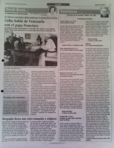 Uribe habló de Venezuela con el Papa Francisco